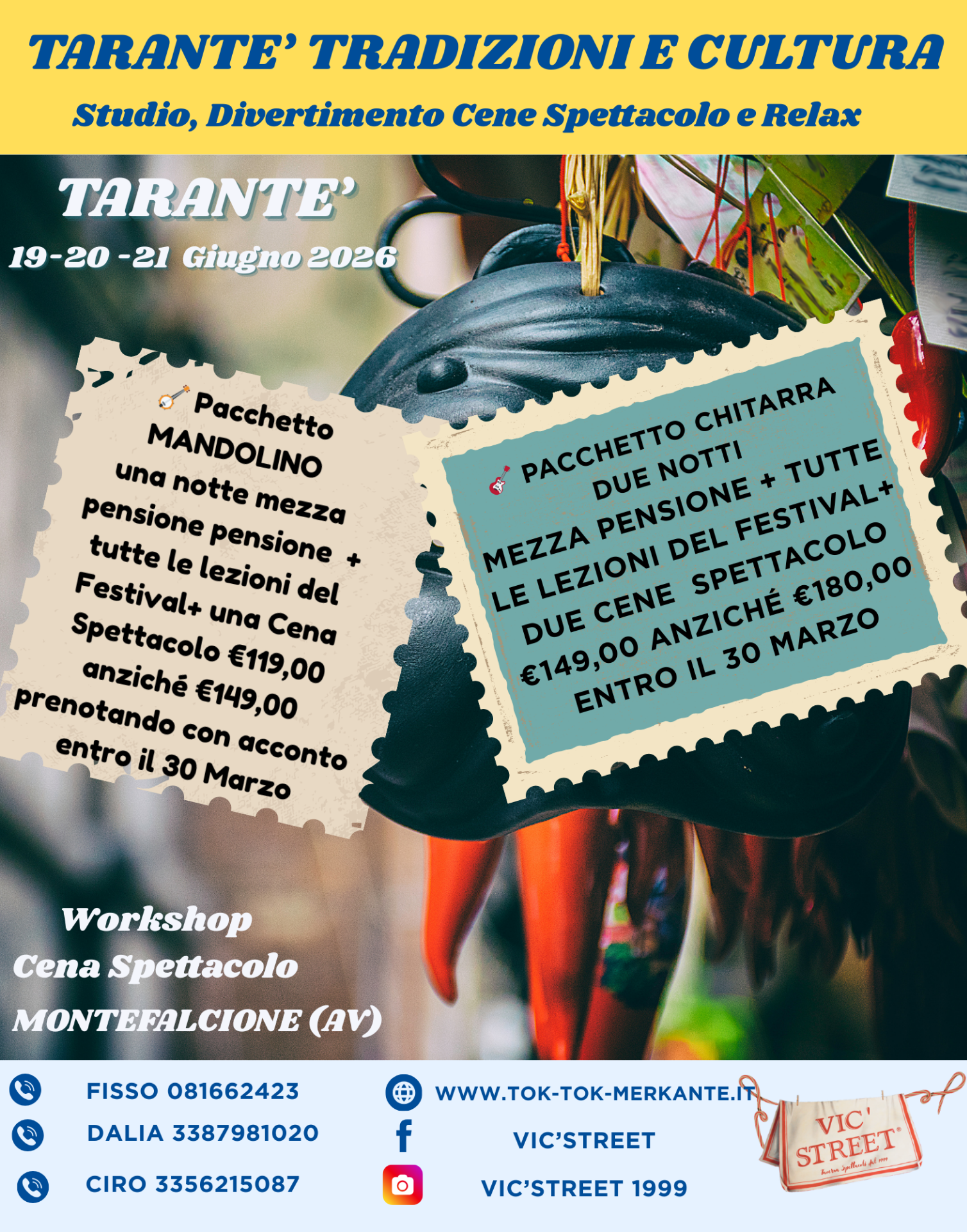 Una notte e due giorni "pensione completa" incluse tutte le lezioni dell'Evento + 1 Cene Spettacolo (sabato sera) + 1 Pranzo Spettacolo (la domenica) include 1/4 acque e vino